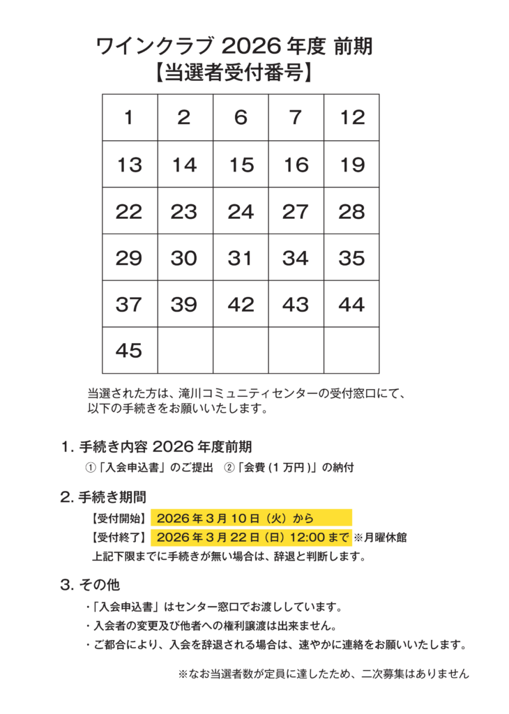 滝川コミュニティセンター受付(月曜休館日)にて手続きを完了させてください。