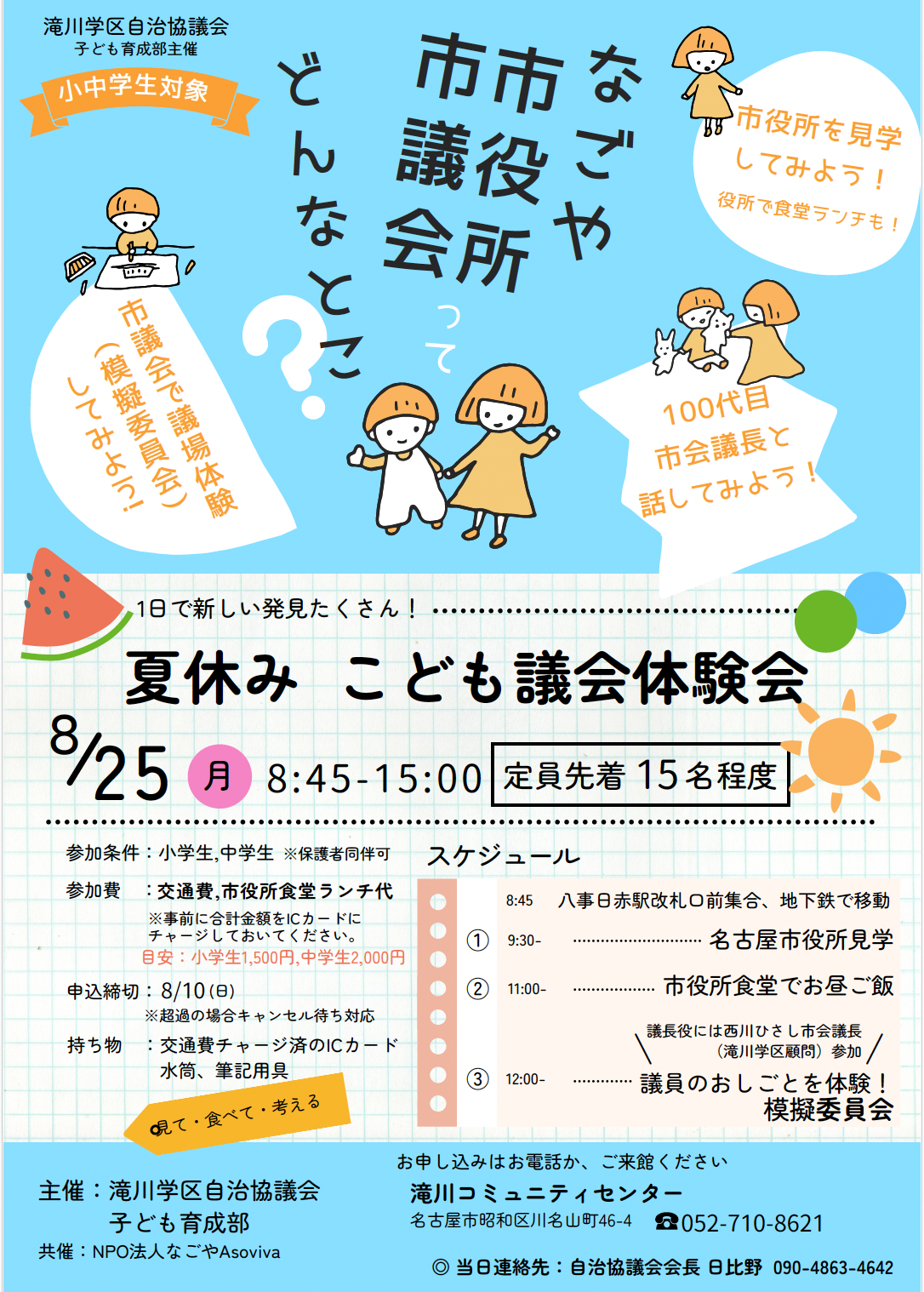 夏休みの滝川学区こども議会体験会を開催します。