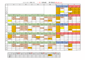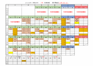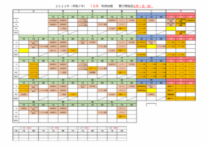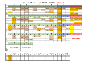 空白の場所が空いている時間帯になります。黄色の場所は埋まっています。