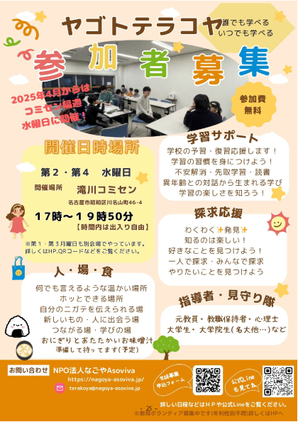 元教員や教職保持者、心理士、大学生、大学院生(名大ほか)が指導者、見守りたいとなっています。