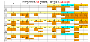 - お申し込みは「先着順」による受付で、電話・メール・ファックス等によるお申し込みや仮予約はできません。